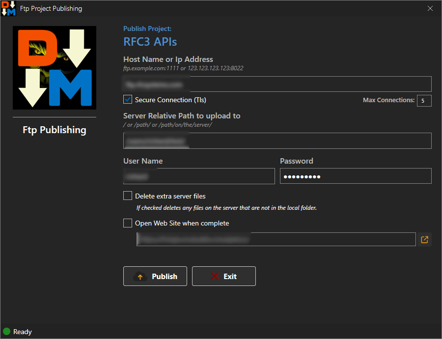 Note that I was just uploading to a test folder in my FTP server and not actually pushing the files to their final destination. For that to work I'll need to setup virtual folders in my FTP environment that point at the proper destinations.