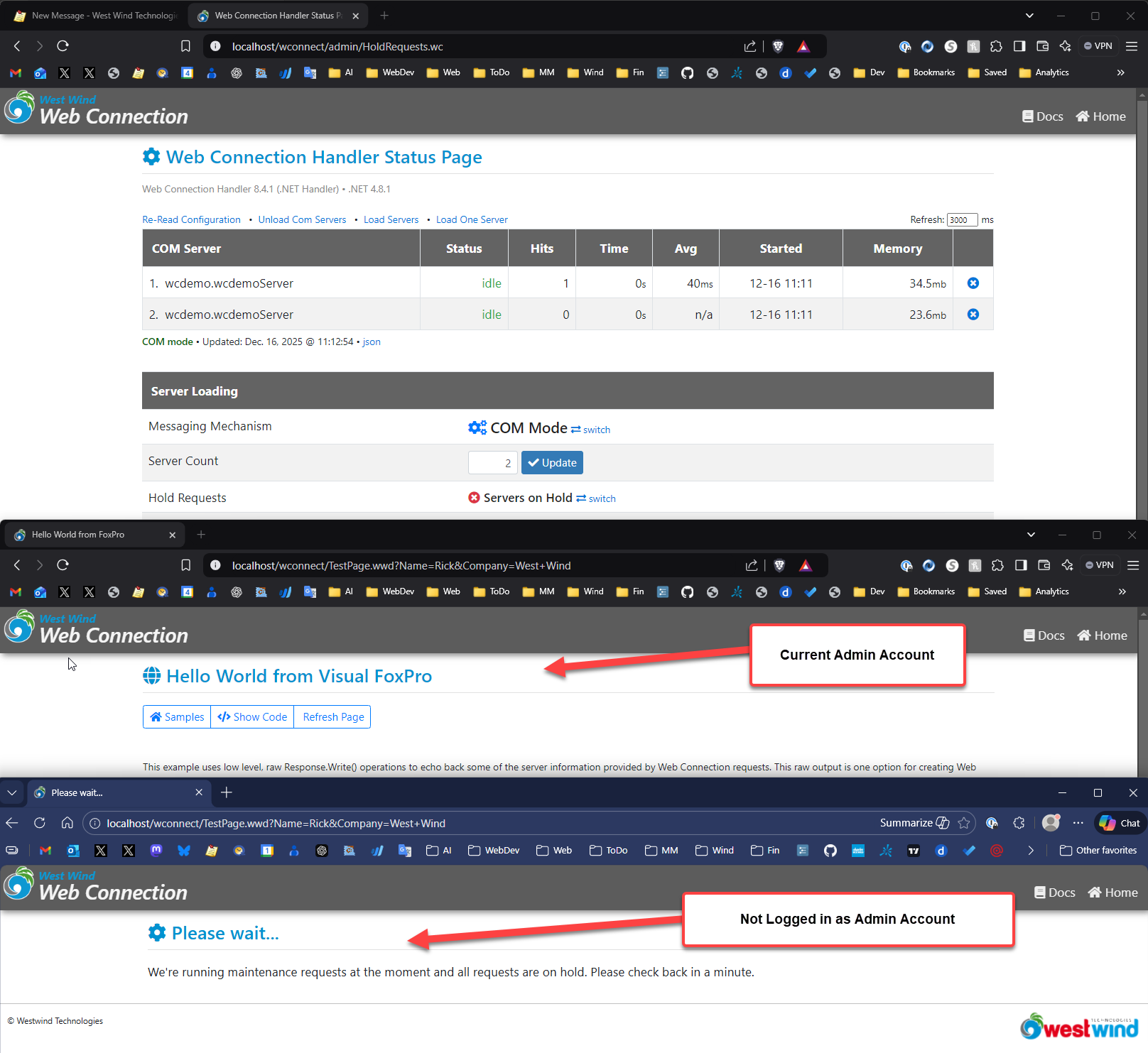 My company is going to be doing some maintenance towards the end of the year so for grins I tried using the server hold option on my staging site. It didn't actually hold requests. I tried the same thing with only one server loaded. Still took the request and processed it. What am I missing?