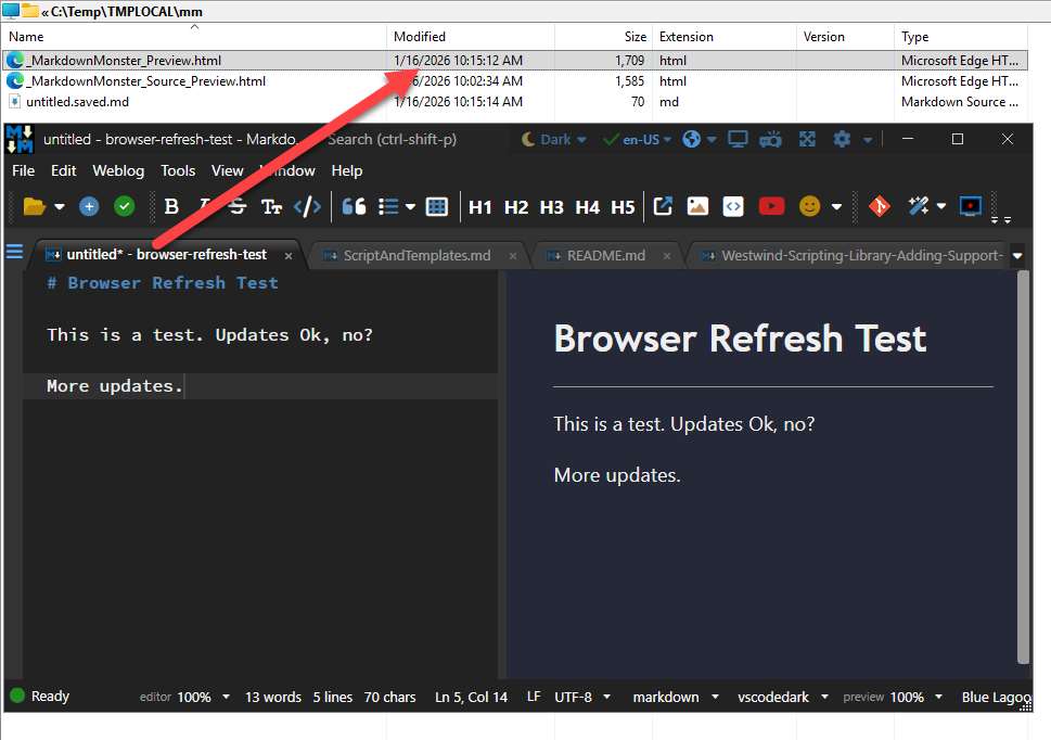When I am editing a markdown document and I preview it in the browser. Why do changes that I make not show up in the browser even if I refresh unless I close it and open it again?