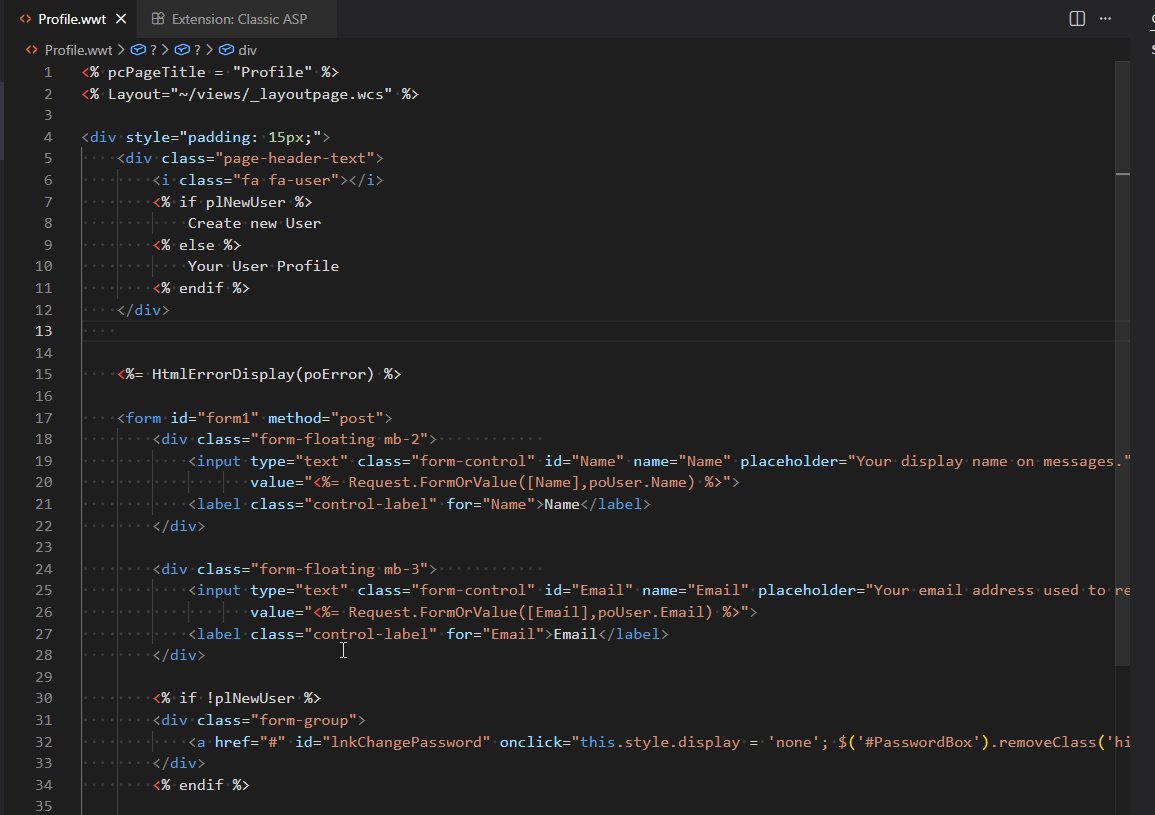 Here is today's special question. When using Code as my template editor, the Problems tab appears to complain about some uses of <%= tags , and I'm trying to figure out the pattern. For example, the message related to the bit shown below is property value expected css(css-propertyvalueexpected)